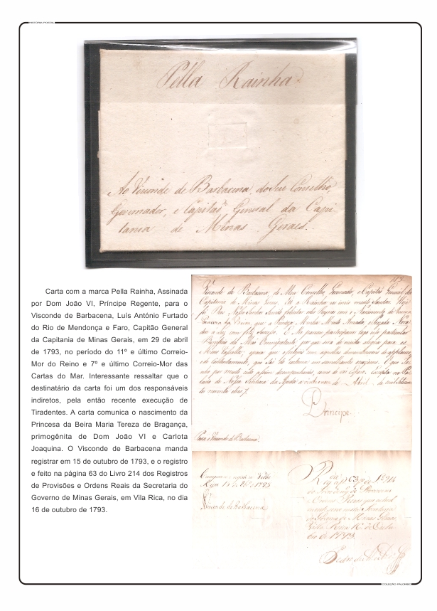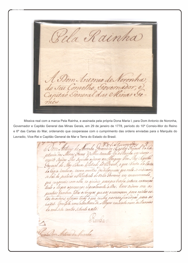 Século XVIII - Cartas Com a Marca de Isenção de Porte Por El Rey e Pela Raynha; Missívas Oficiais e cartas circuladas no Brasil dos Períodos dos 9º, 10º e 11º(último) Correio-Mor do Reino e 4º, 5º e 6º das Cartas do Mar. AS PEÇAS DESSE PERÍODO ESTÃO EM ESTUDO. EM BREVE ESTARÃO AQUI.